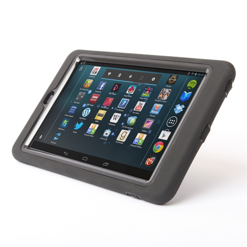 The shell of The Revolution is made from a polycarbonate plastic and silicon that is durable and easy to grip; materials designed to absorb the wear and tear of daily use. Drops and scratches are every tablet/smart phone owners fear, however, it is often dust and dirt that do the most damage. The Revolution will help you keep your device safe and clean.